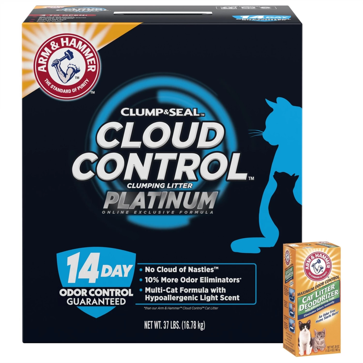 Arm & Hammer Litter Cat Litter Deodorizer Powder & Arm & Hammer Litter Cloud Control Platinum Multi-Cat Clumping Cat Litter With Hypoallergenic Light Scent