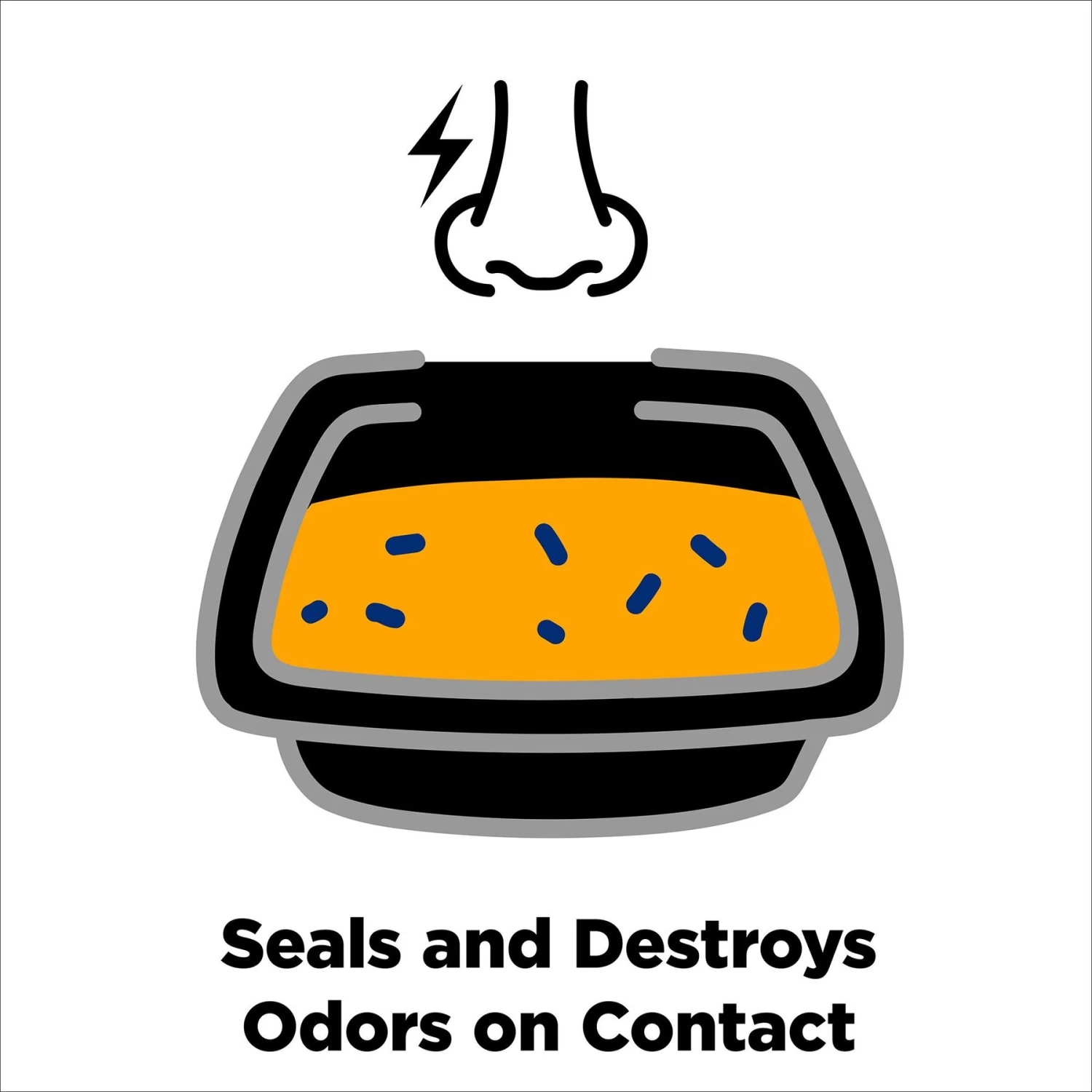 • Litter seals in and destroys odors, forming rock-solid clumps. Remove clumps and solid waste daily to keep the rest of the litter fresh.