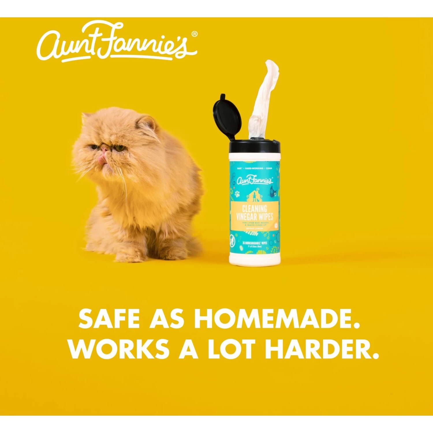 Aunt Fannie’s Cleaning Vinegar Bright Lemon Scented Cat Wipes, 35 Count