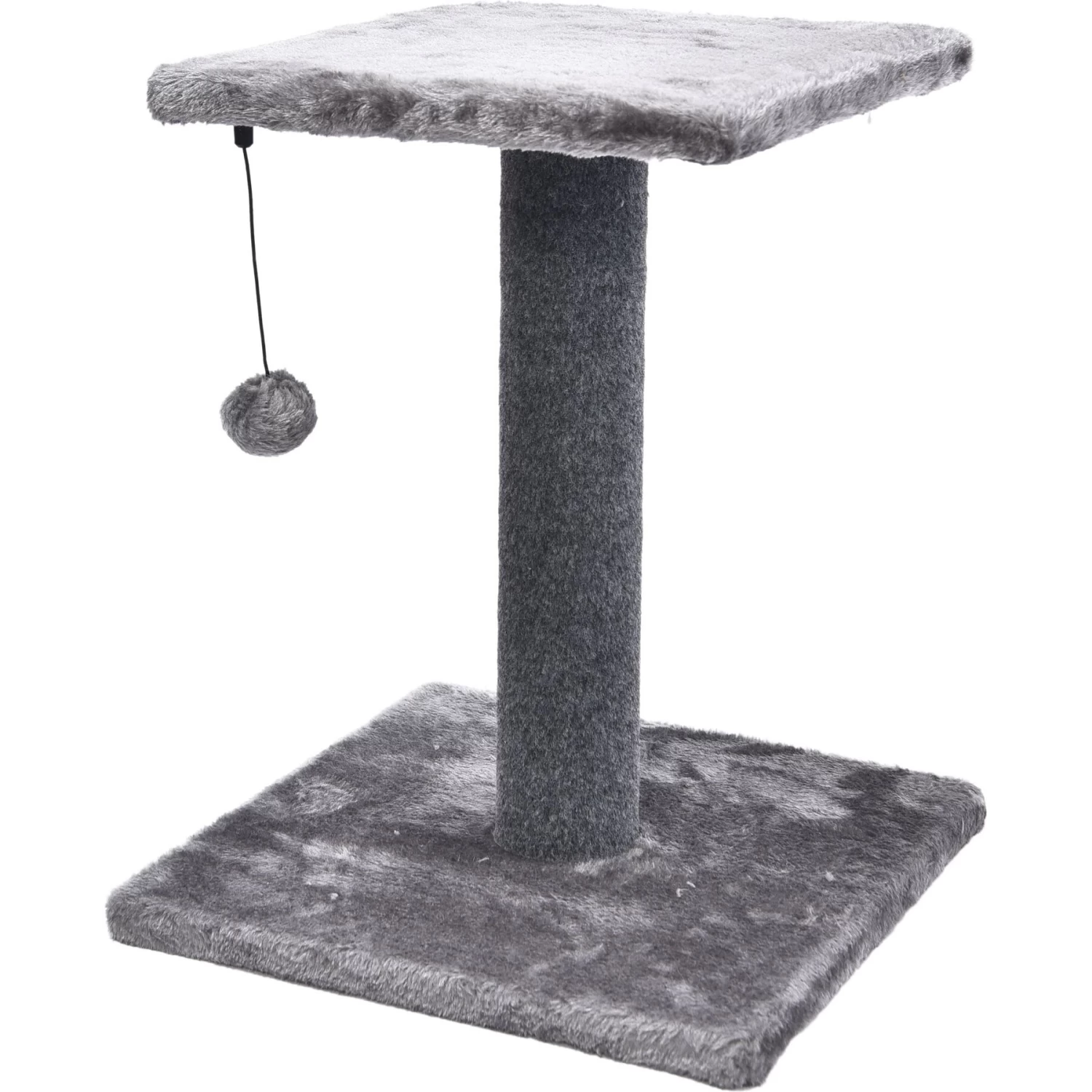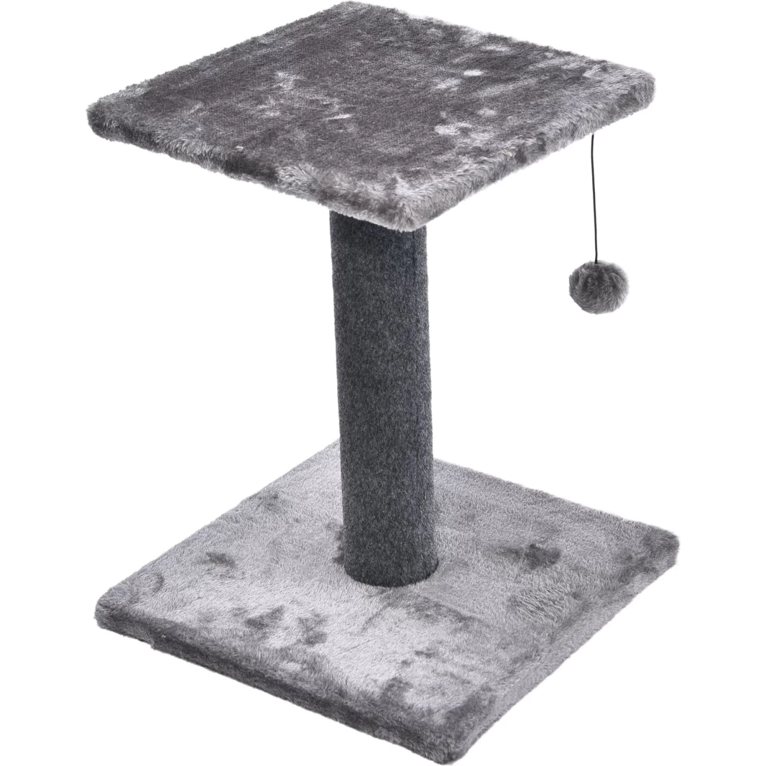Cat Craft 2 Tier Plush Pedestal Cat Scratching Post & Platform Lounge With Hanging Cat Toy, Grey