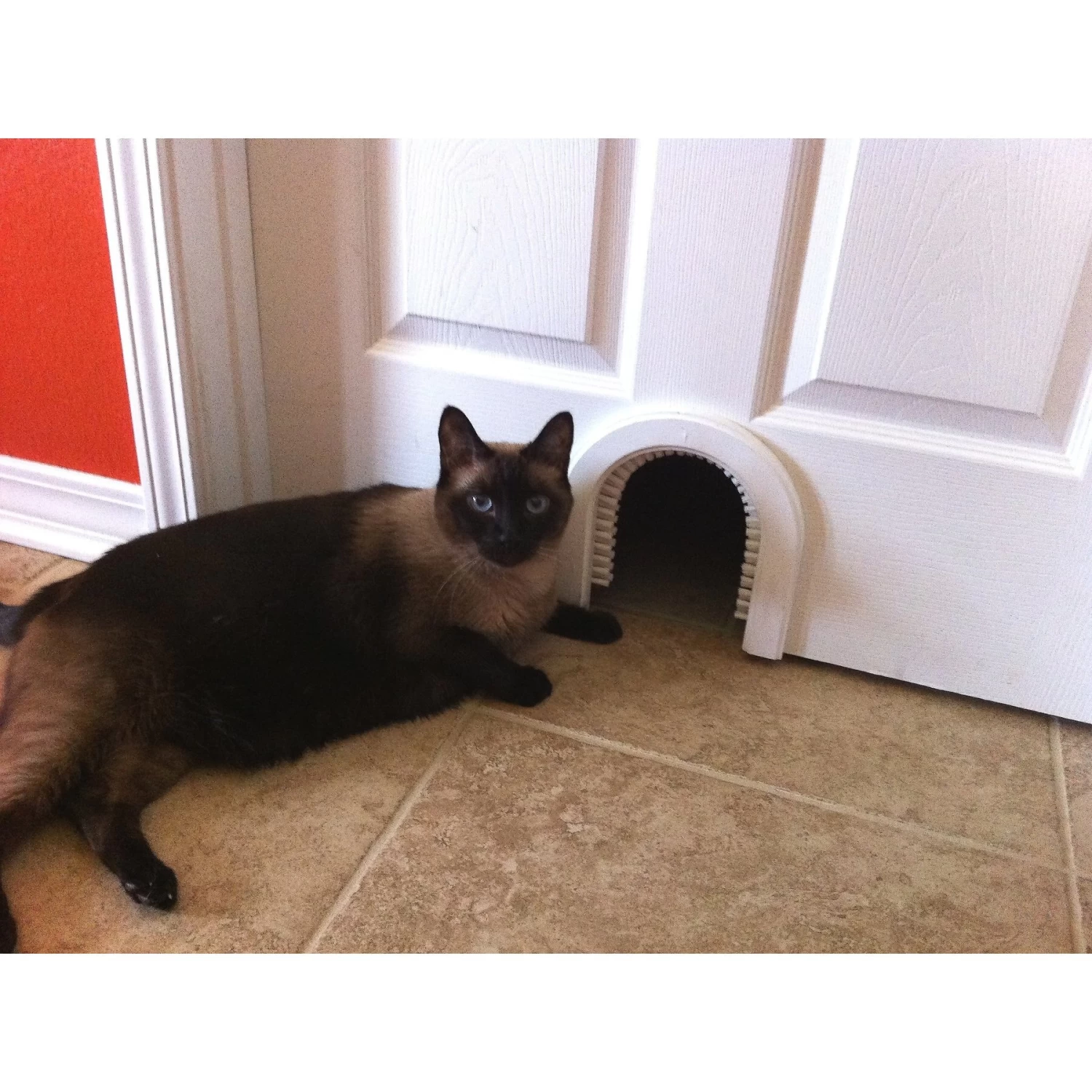 - This cat door has a removable brush that grooms kitty as they enter and exit their area, and accommodates cats up to 20 pounds in size.