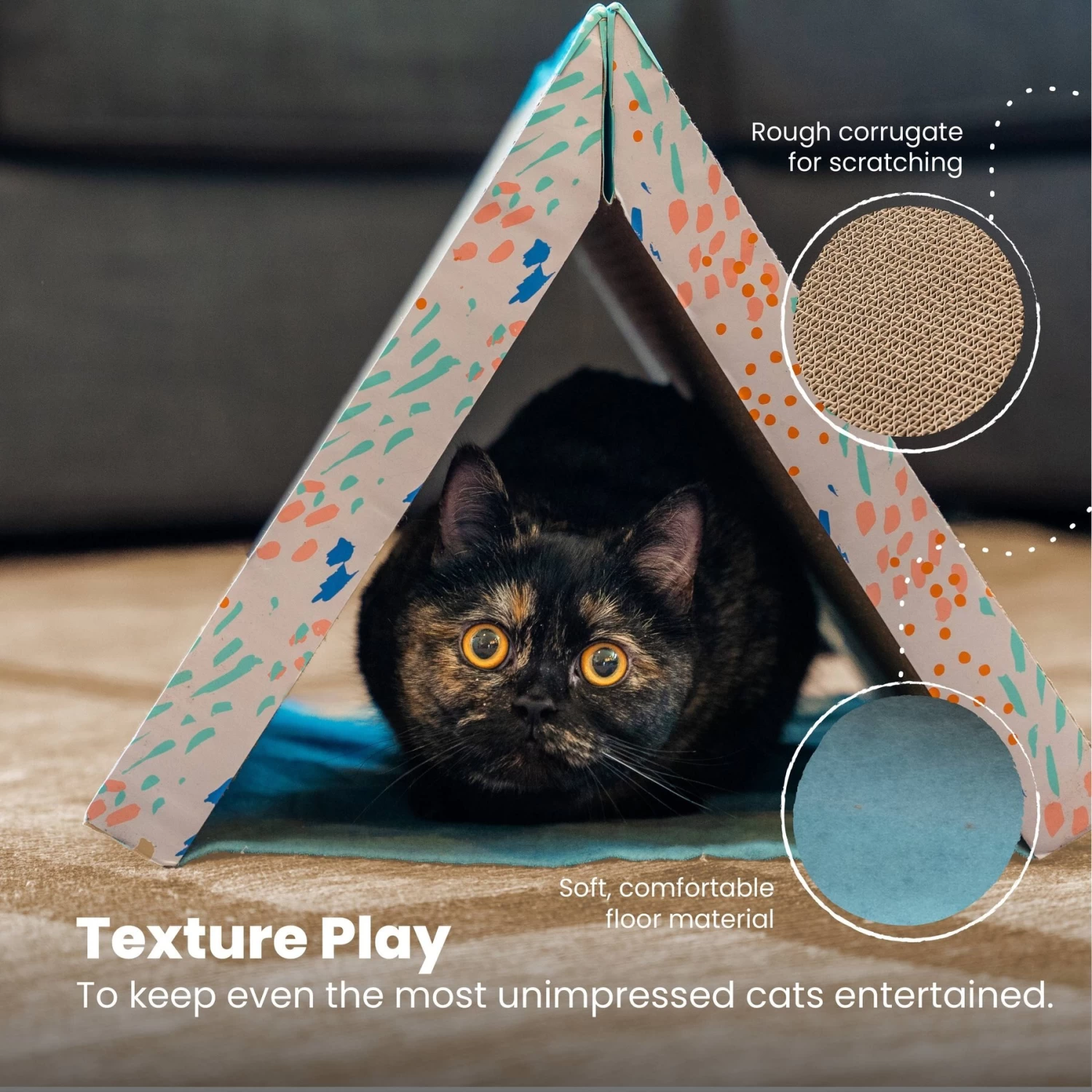 - Can be used propped up for hiding and scratching or flat on the ground for scratching only.