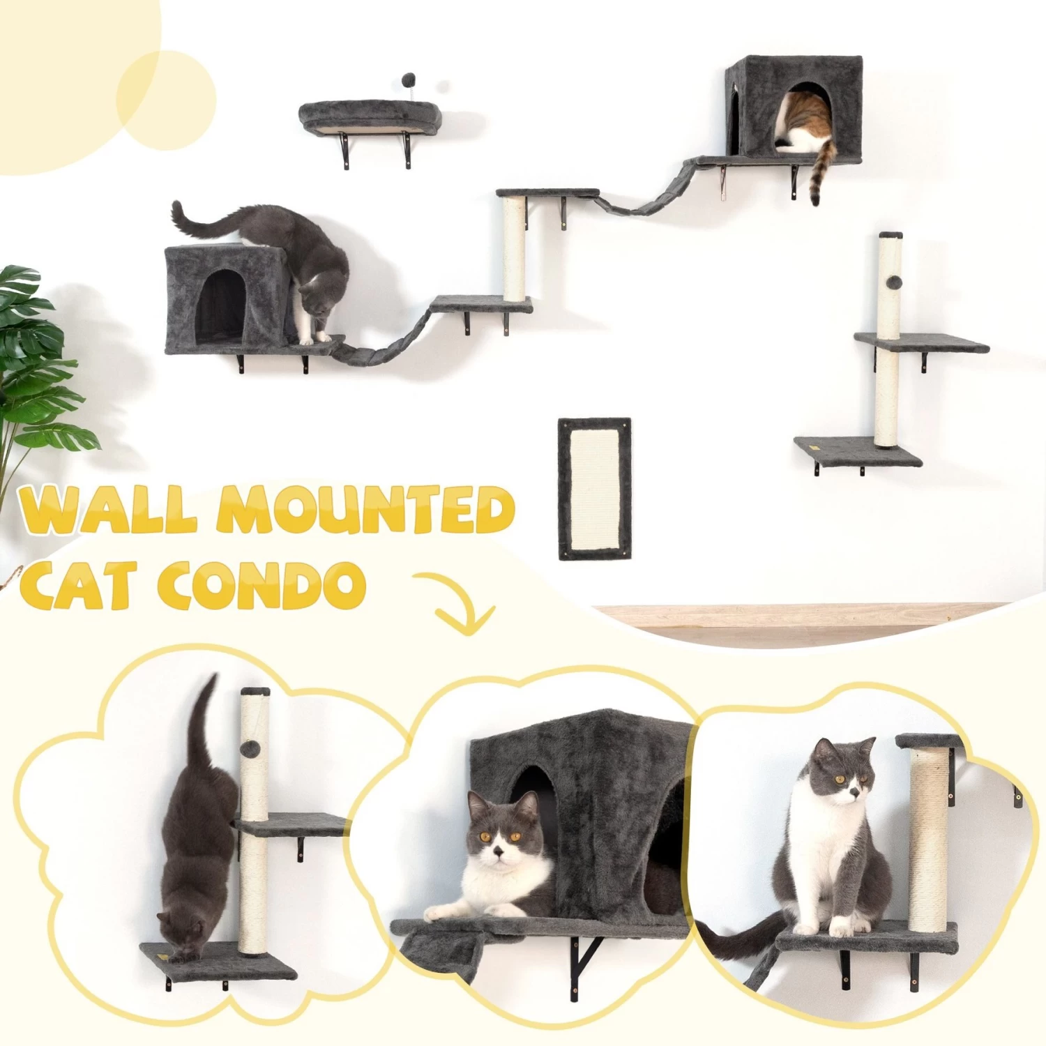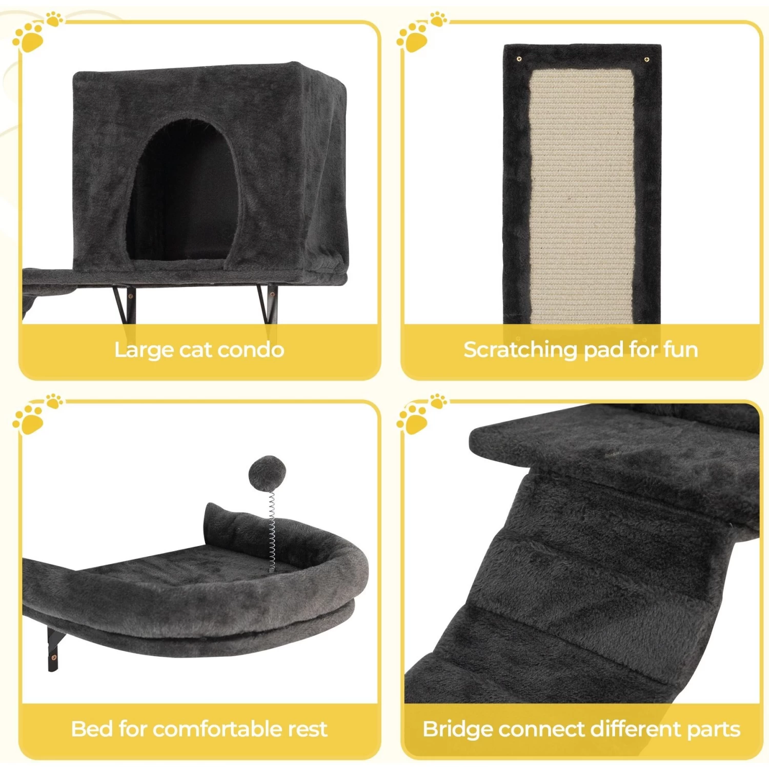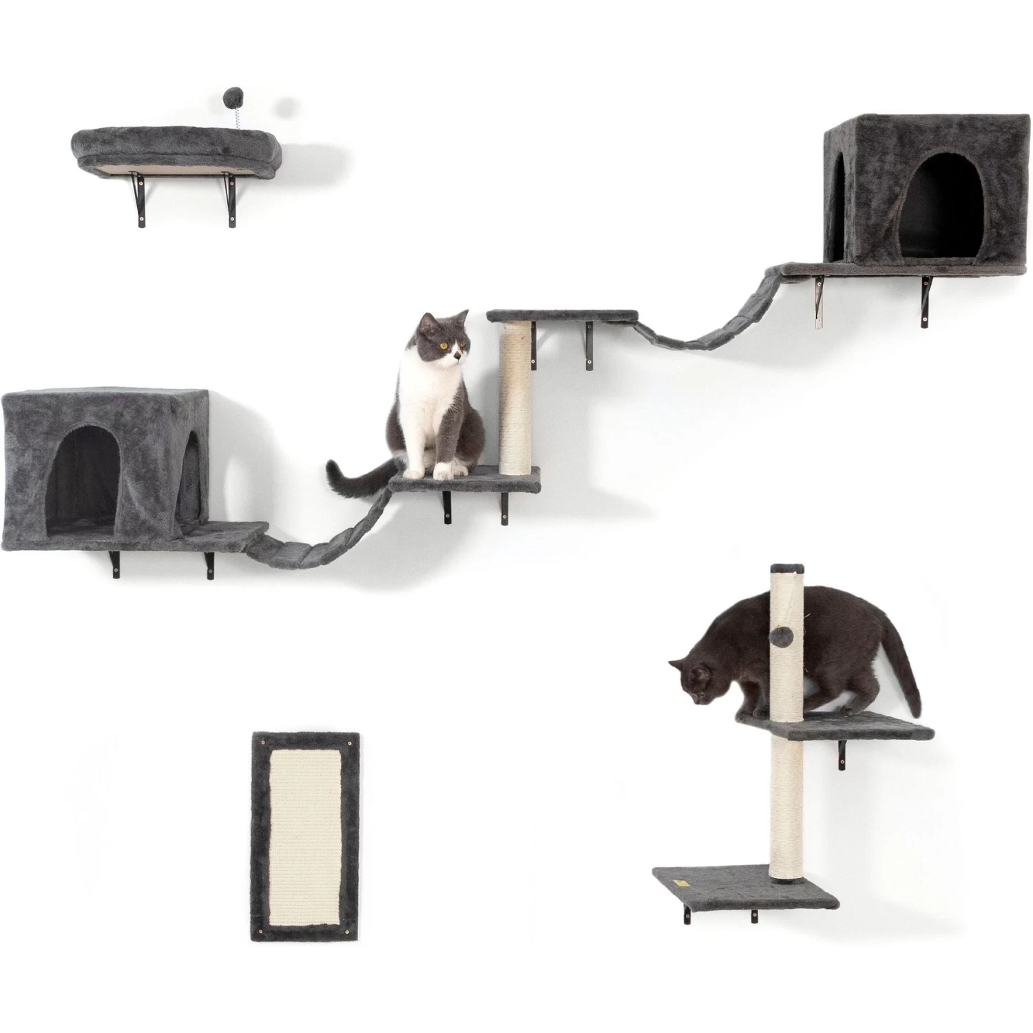 - This five-piece shelf set creates a purr-ivate vertical playground for your feline to help keep them active and happy.