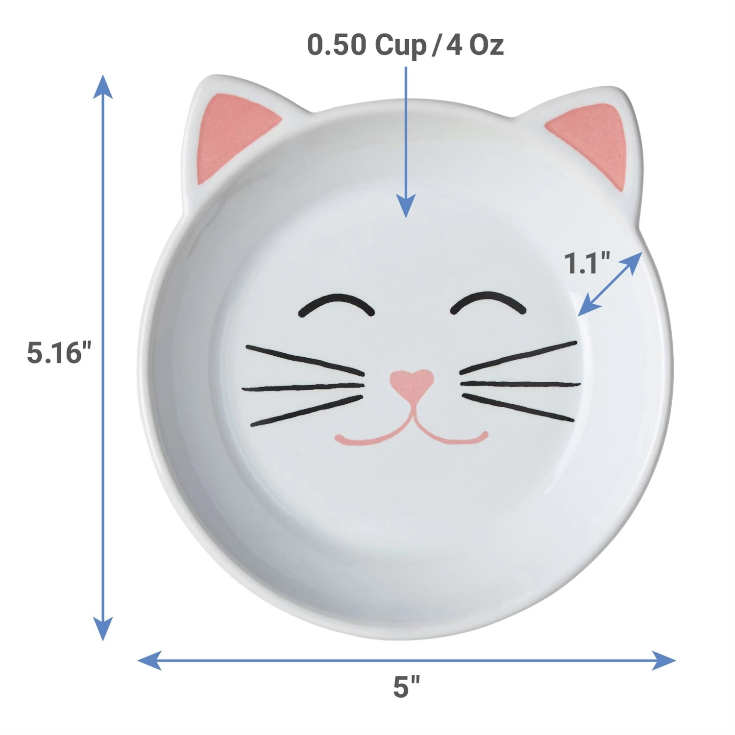 - Clean, white ceramic saucer-style dish with a cute cat face inside and ears attached.