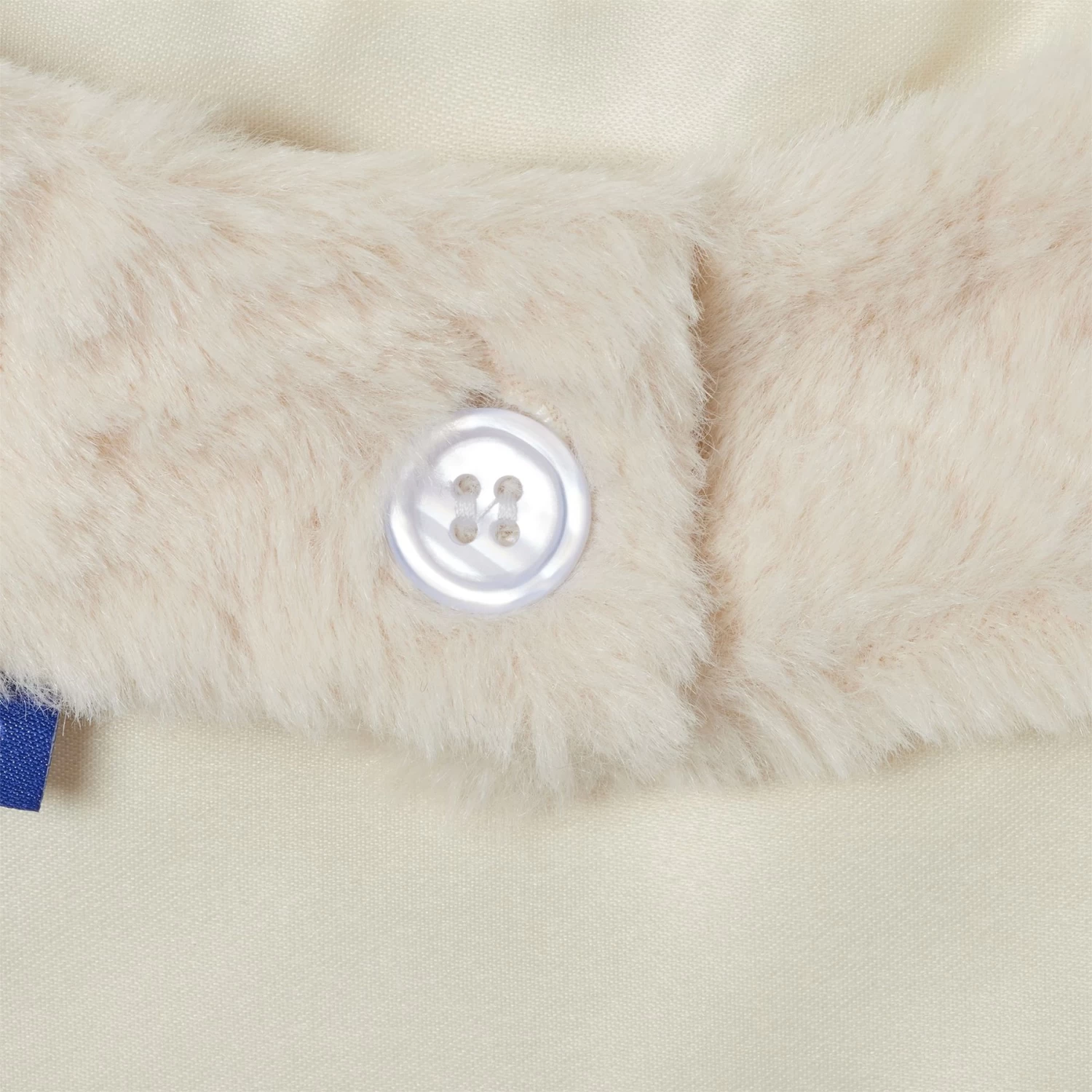 - The cream-colored faux fur front and smooth satin lining offer luxurious textures on both sides.