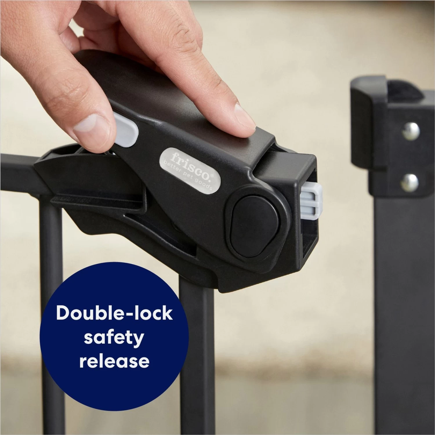 - From Frisco by Chewy. Any room in your house can be a safe place for your pup to play or lounge with this sturdy, extra-wide gate.