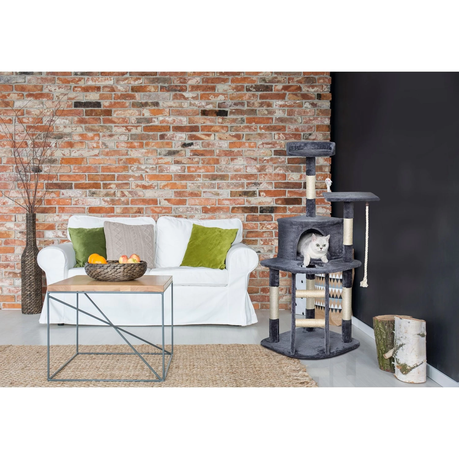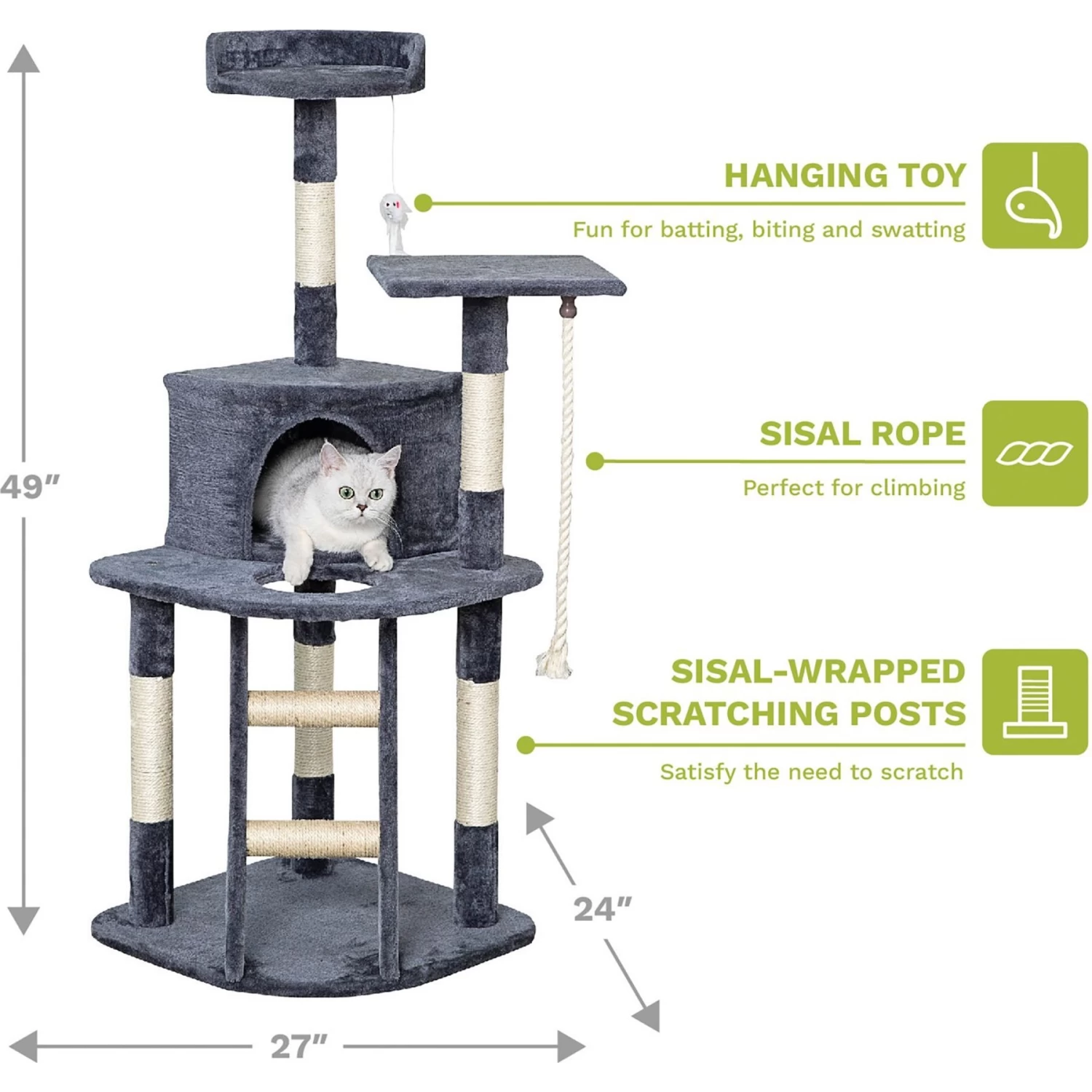 - Discourage your kitty from ruining your furniture and floors with the sisal rope-wrapped posts that are great for scratching.