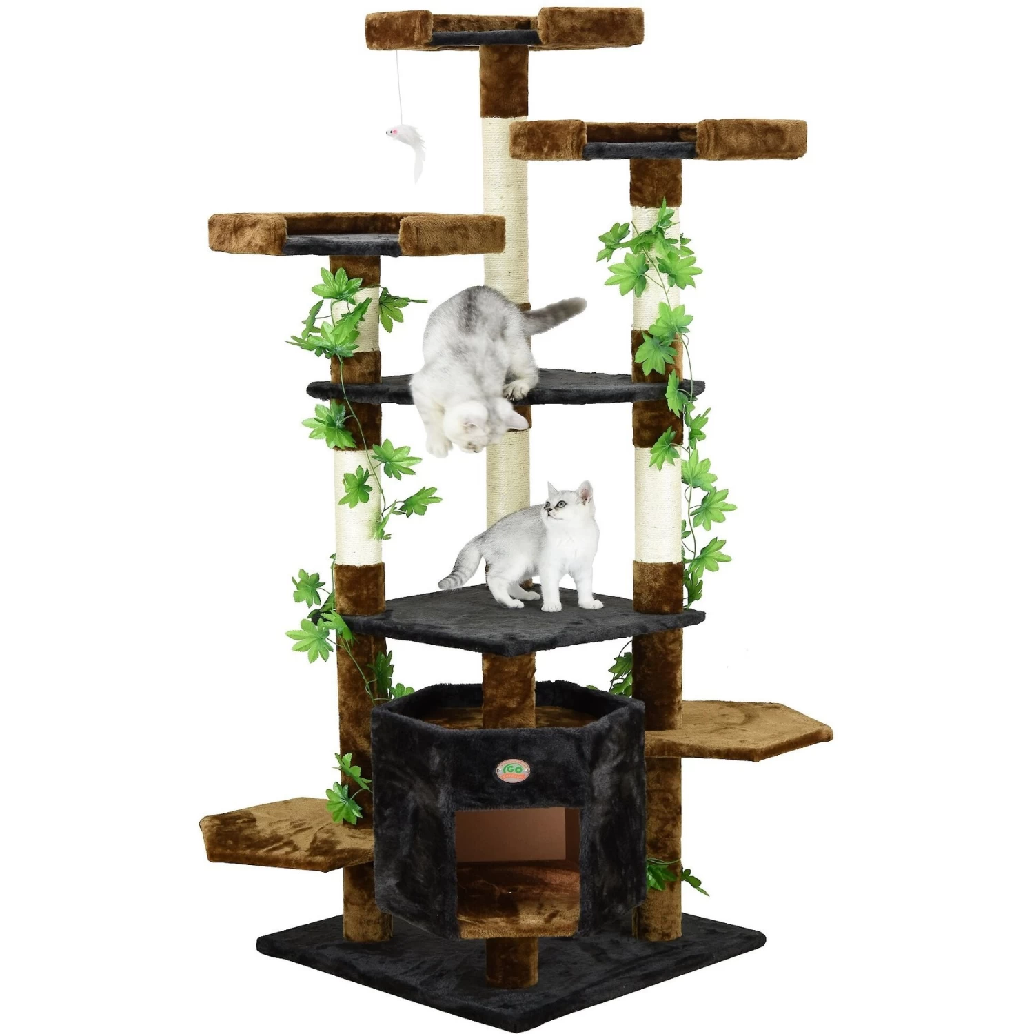 Go Pet Club 67-in Forest With Leaves Cat Tree, Blue/ Brown