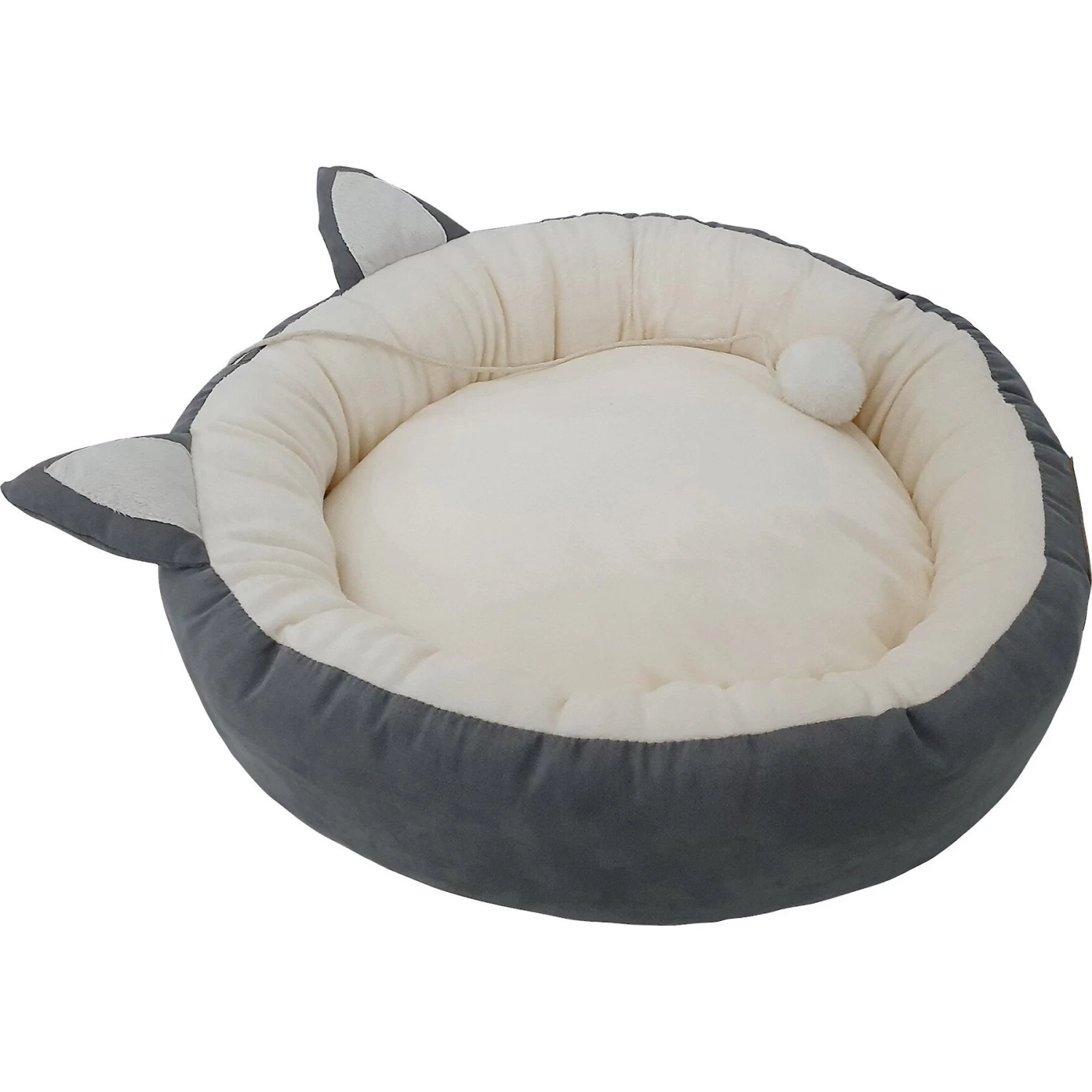 - Cute kitty design features two familiar, pointy ears and a fuzzy ball for your furbaby to bat around or cuddle.