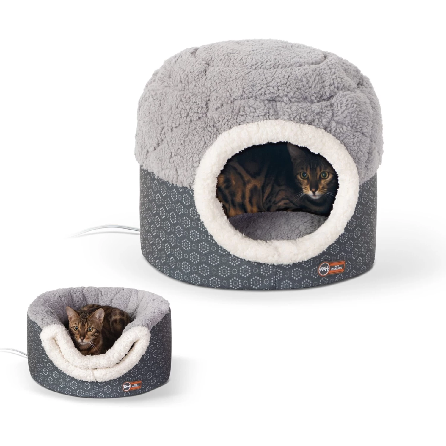 K&H Pet Products Thermo-Pet Nest Covered Indoor Heated Cat Bed House, Gray, Small