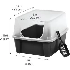 IRIS USA Large High-Back Open Top Cat Litter Pan With Scatter Shield & Scoop