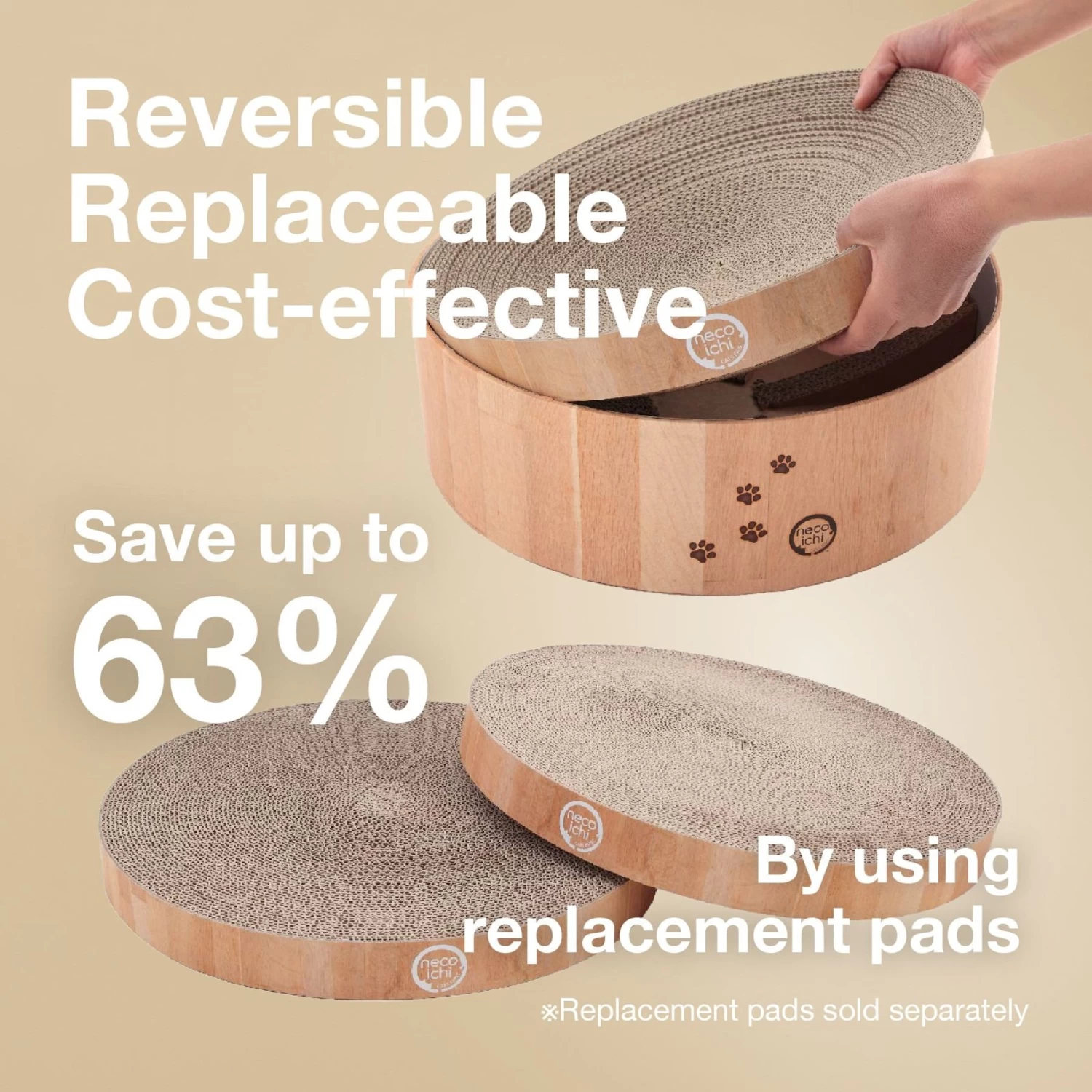 - Designed with a replaceable scratching pad that’s also reversible.