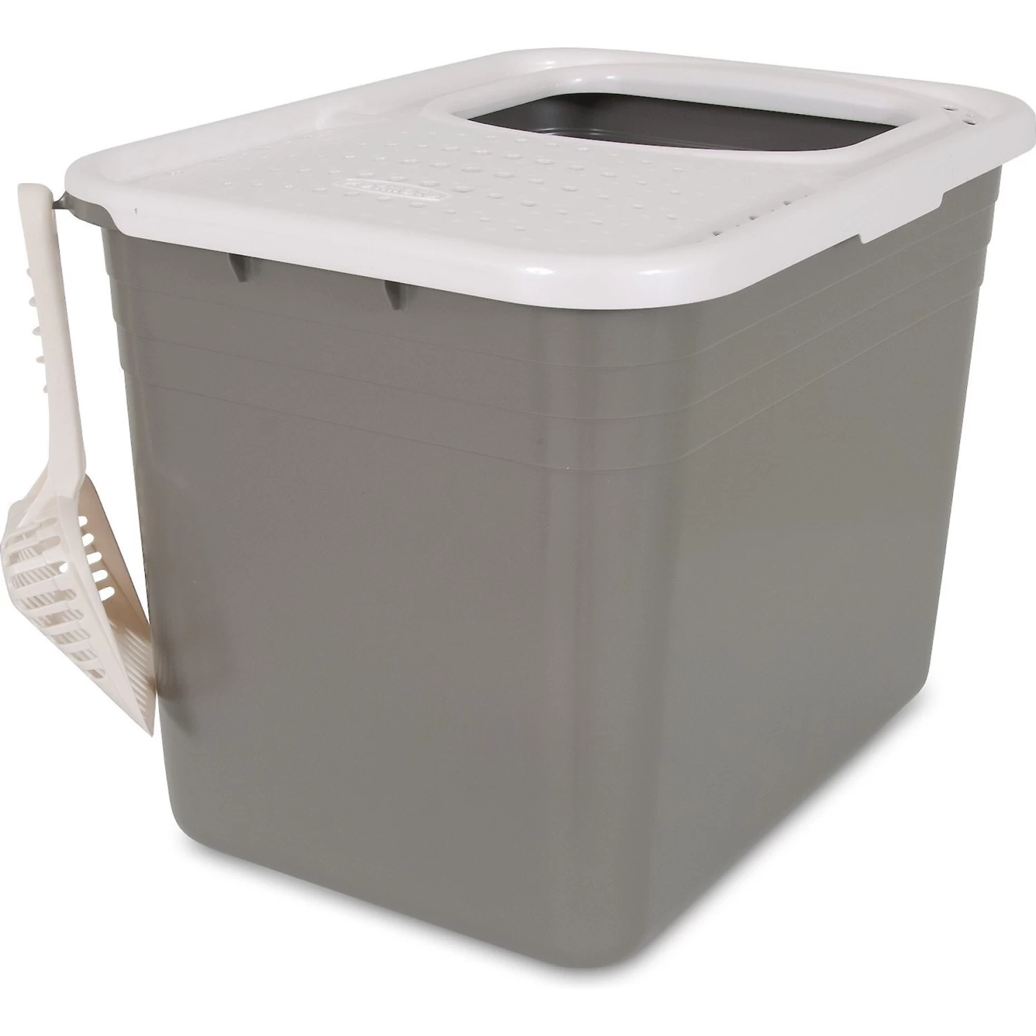 - Built in handles allow for easy moving and pouring out old litter and molded in hook for litter scoop storage.