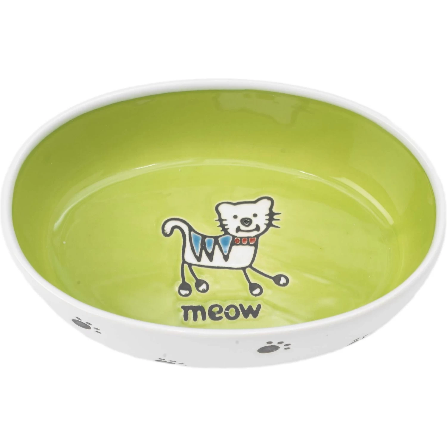 PetRageous Designs Silly Kitty Oval Ceramic Cat Bowl