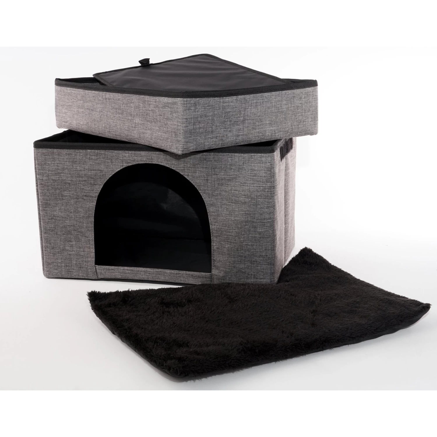 Precious Tails Home Base Rectangular 2-Tier Collapsible Cat Cave