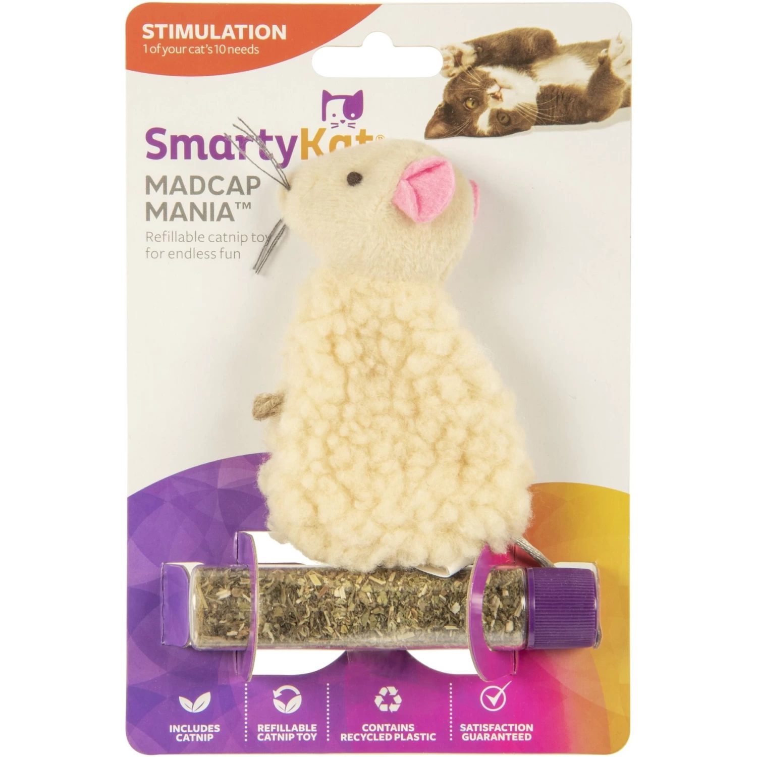 - SmartyKat’s Madcap Mouse Refillable Catnip Cat Toy will have your kitty springing around the house in pursuit of this fuzzy mouse.
