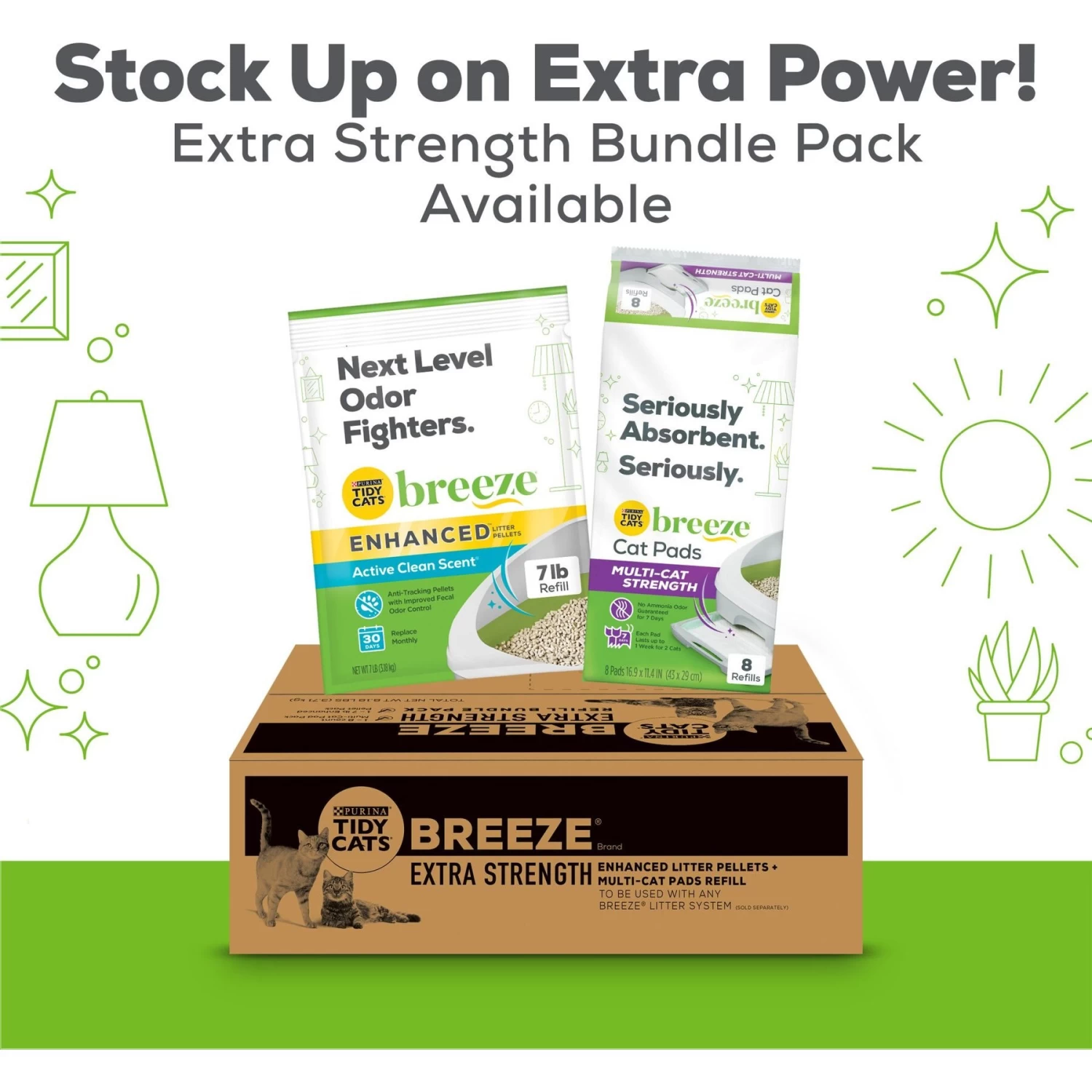 • Bundle pack comes with one 7-pound bag of Tidy Cat Breeze Pellets and two, 4-count pouches of Breeze Pads for 2 months of refills for one cat companion.