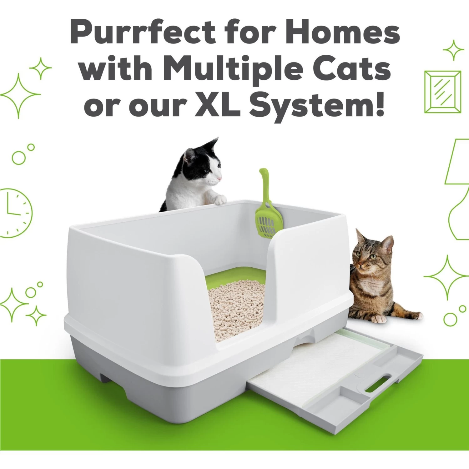 • Toss out that old box completely once your cats have started using the BREEZE system for all of their potty needs. Animal behaviorists recommend multiple cat households have multiple litter boxes: one system per cat, plus one additional system (2 cats = 3 litter systems).