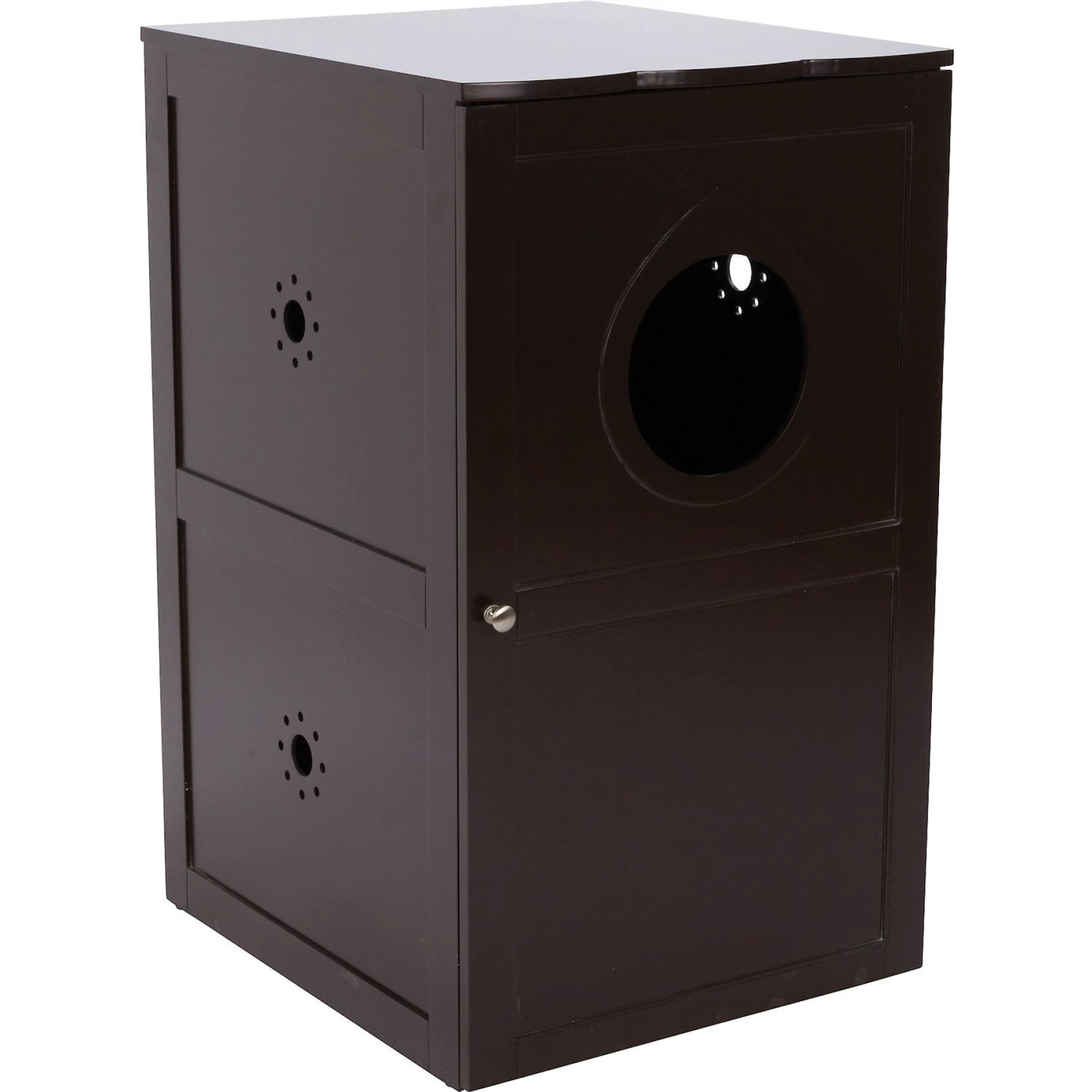 - Two-story cabinet lets you hide your litter box from view or makes a great indoor cat house with cushions inside.