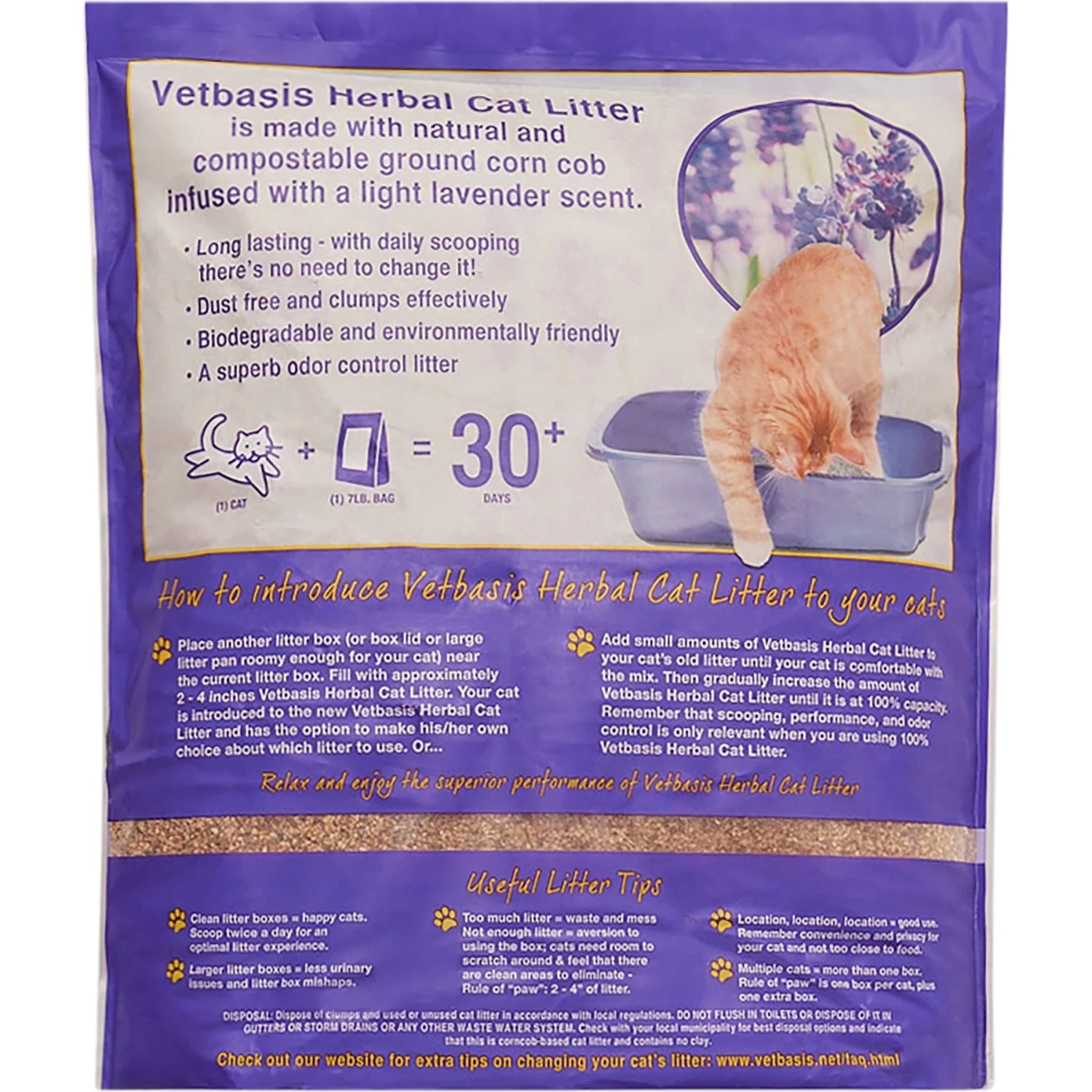- Features biodegradable ground corn cobs that naturally clump.