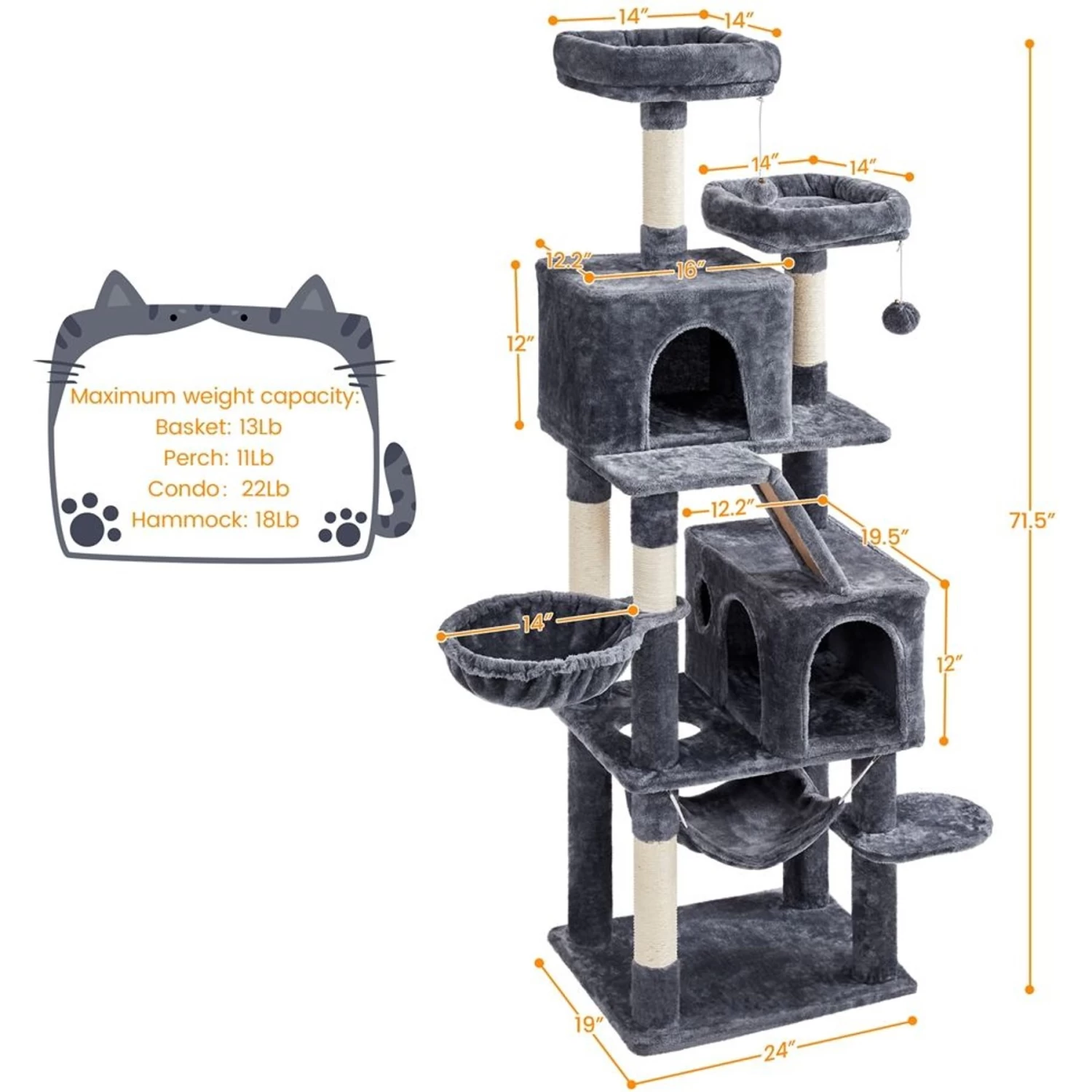 Yaheetech 71.5-in Tree With 2 Cozy Perches Cat Tree, Dark Grey, Large