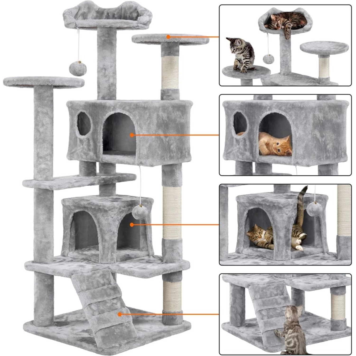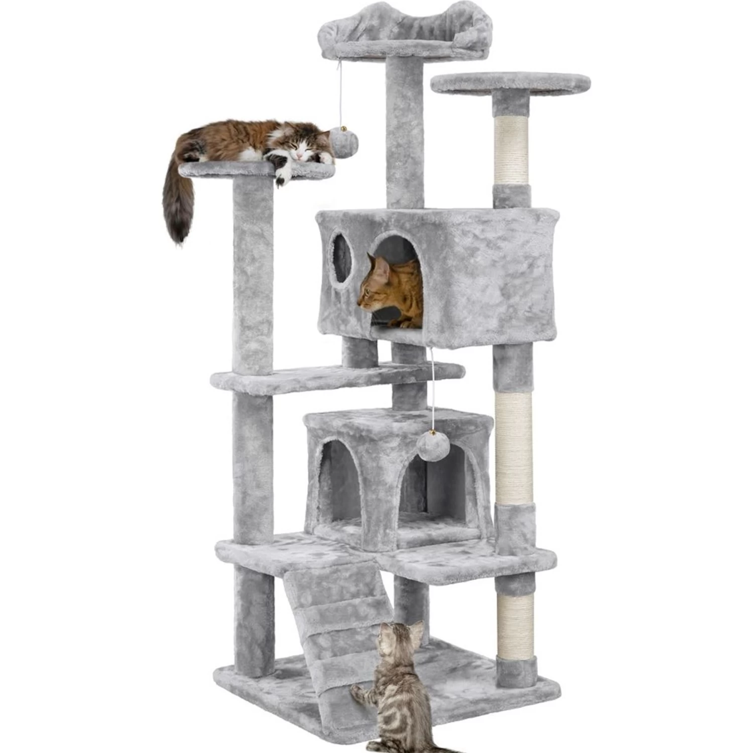 - Includes a safety strap to help secure the cat tree to a wall, which helps prevent your cat from getting hurt when leaping off the tree.
