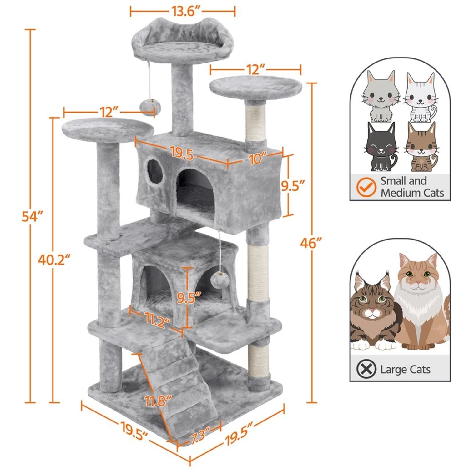 - Features two enclosed condos with doors and windows so that your kitties can have a hiding spot.